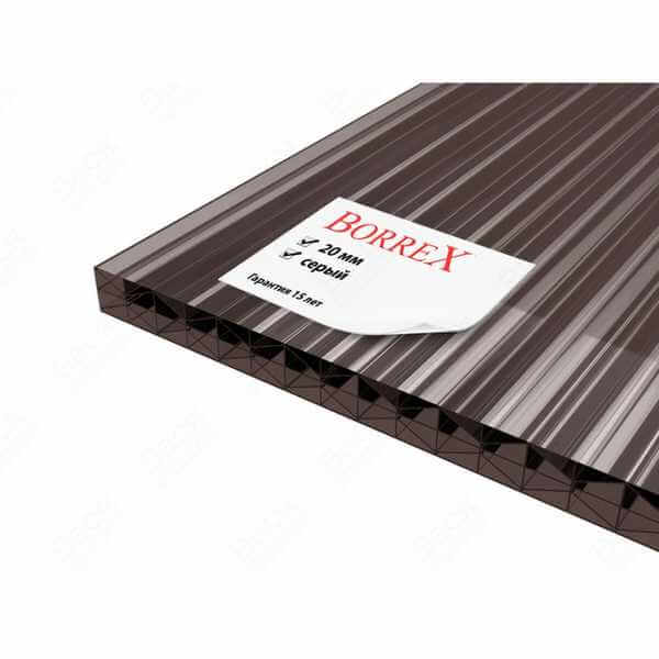 Сотовый поликарбонат 20 мм BORREX серый 2100х12000 мм