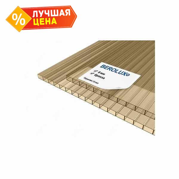 Сотовый поликарбонат 8 мм BEROLUX бронза 2100х12000 мм - это прочный и легкий материал, который отлично подходит для использования в различных строительных и дизайнерских проектах. Поликарбонат обладает высокой устойчивостью к ударным нагрузкам, а также хорошей теплоизоляцией, что делает его идеальным выбором для создания крыш, навесов, ограждений и других конструкций.