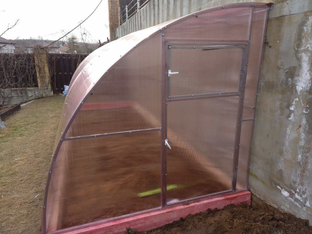 Теплица из поликарбоната Усиленная Пристенная 2,3х10 h=2.1 м профиль 25х25 мм
